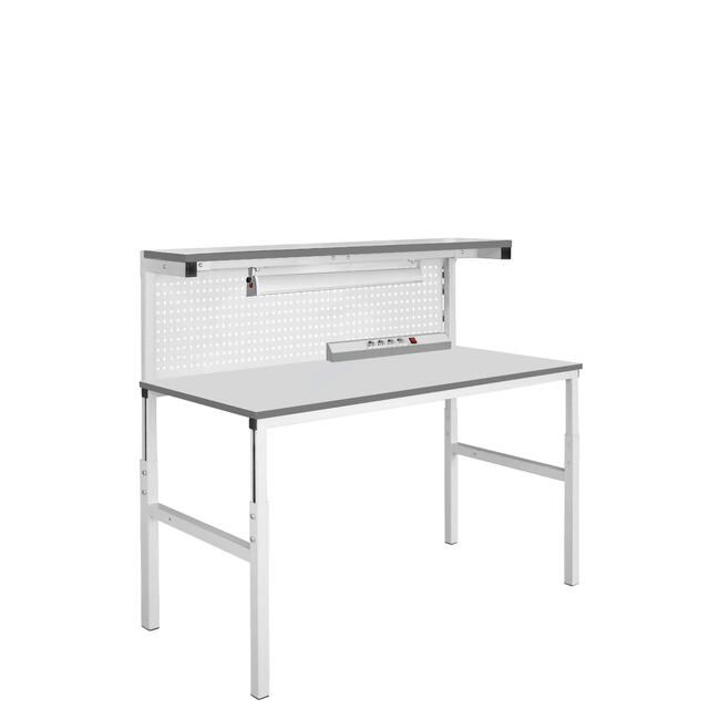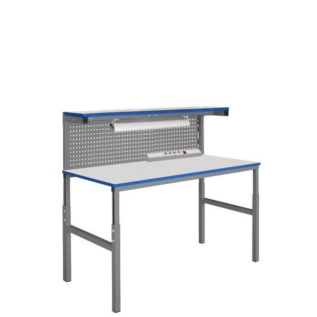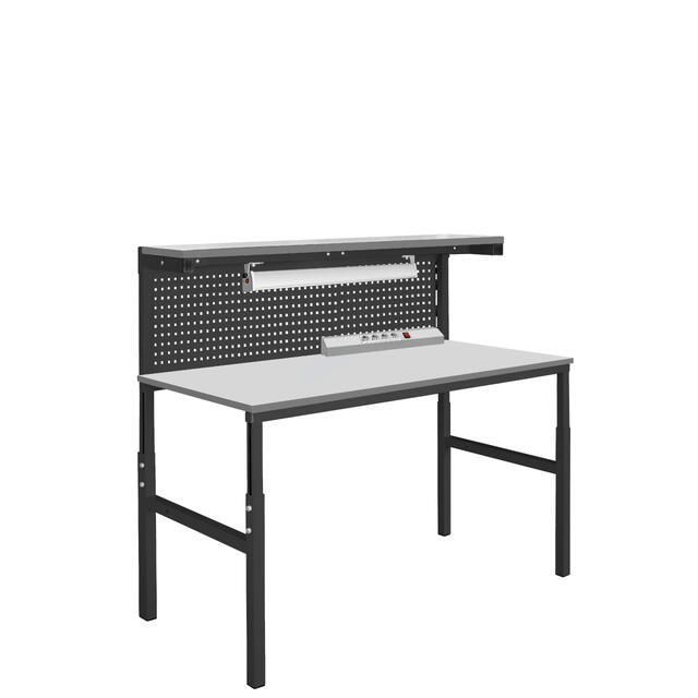 Металлический каркас стола выполнен из П-образного профиля, покрытого износостойкой порошковой краской светло-серого цвета RAL7035. Высота столешницы регулируется в пределах от 650 мм до 950 мм. Распределенная нагрузка на стол — до 300 кг. Конструкция стола позволяет оснастить его дополнительным оборудованием.