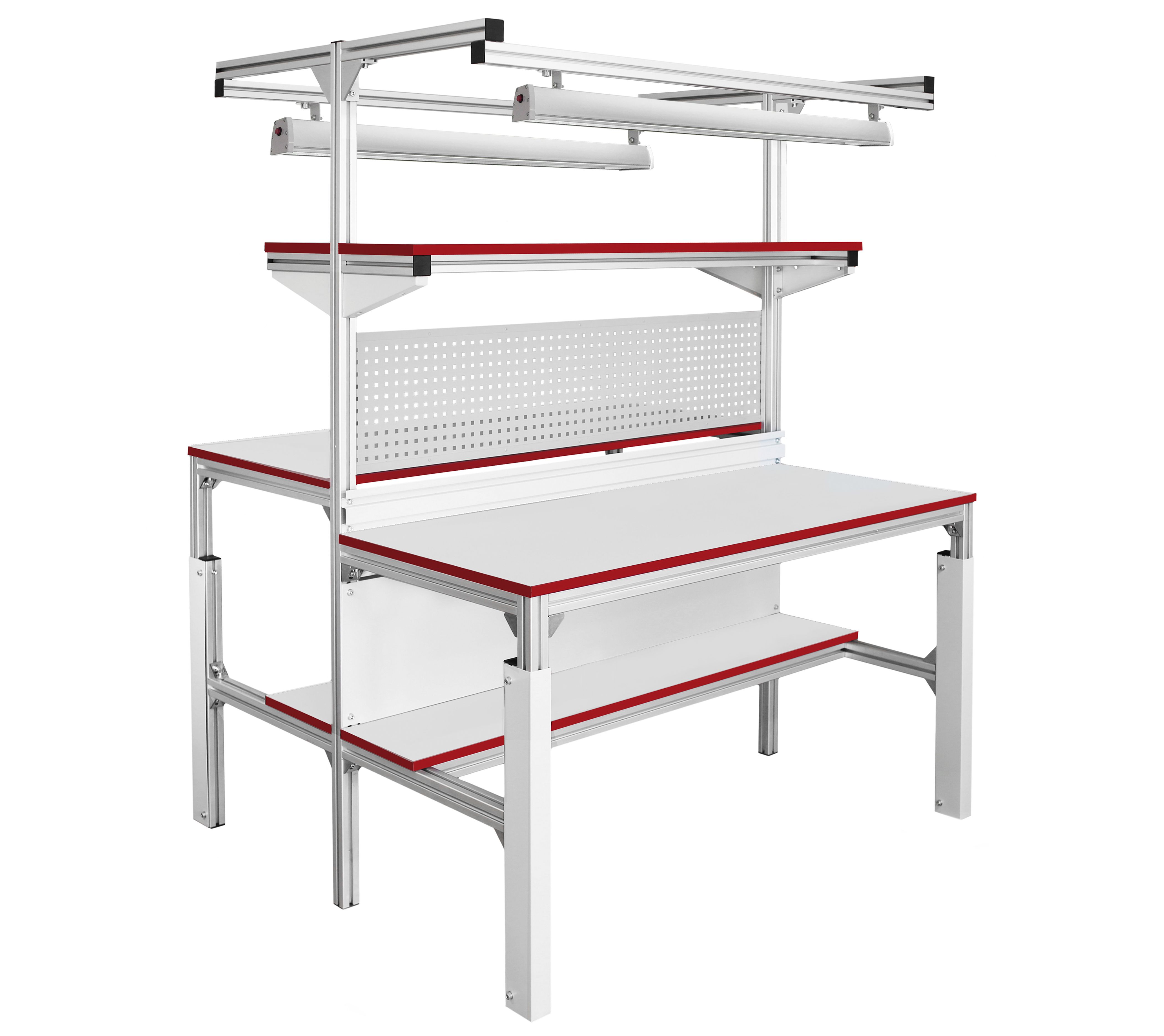 Каркас стола изготовлен из конструкционного профиля. Высота столешниц регулируется в пределах от 650 мм. до 950 мм. Распределенная нагрузка на стол — до 300 кг. Конструкция стола позволяет оснастить его дополнительным оборудованием и интегрировать с конвейерами, рольгангами.