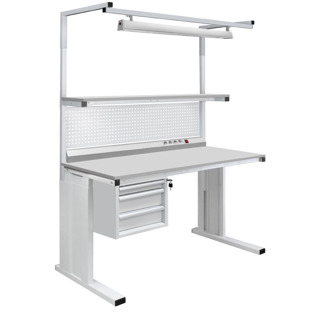 Модульная конструкция дает возможность оснастить стол дополнительным оборудованием: подвесными тумбами, перфорированными панелями, электропанелями, планкой для крепления лотков, полками для приборов оборудования, полкой приборной нижней, освещением рабочей поверхности, угловым столом, крючками для инструментов и другим дополнительным оборудованием и оснащением.