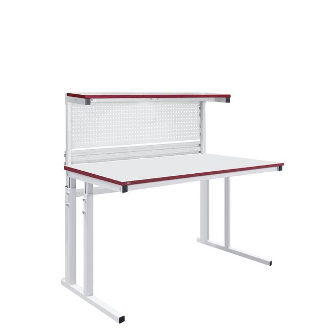 Металлический каркас стола выполнен из П-образного профиля, покрытого износостойкой порошковой краской светло-серого цвета RAL7035. Высота столешницы регулируется в пределах от 750 мм до 950 мм. Распределенная нагрузка на стол — до 200 кг. Конструкция стола позволяет оснастить его дополнительным оборудованием. Столешница промышленного стола СПР изготовлена из ламинированного ДСП толщиной 25 мм. Износостойкое покрытие из промышленного пластика обладает высокой стойкостью к термическим и механическим нагрузкам. Цвет кромки стола — бордовый, соответствует фирменному стилю компании. Масса стола 30 кг, поставляется в разобранном и упакованном виде. В комплект поставки входит подробная инструкция по сборке.