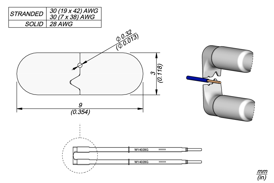 JBC W14028G. Наконечник для термозачистки проводов плоский с отверстием Ø 0.32 мм