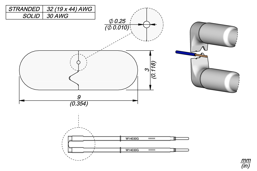 картинка JBC W14030G. Наконечник для термозачистки проводов плоский с отверстием Ø 0.25 мм