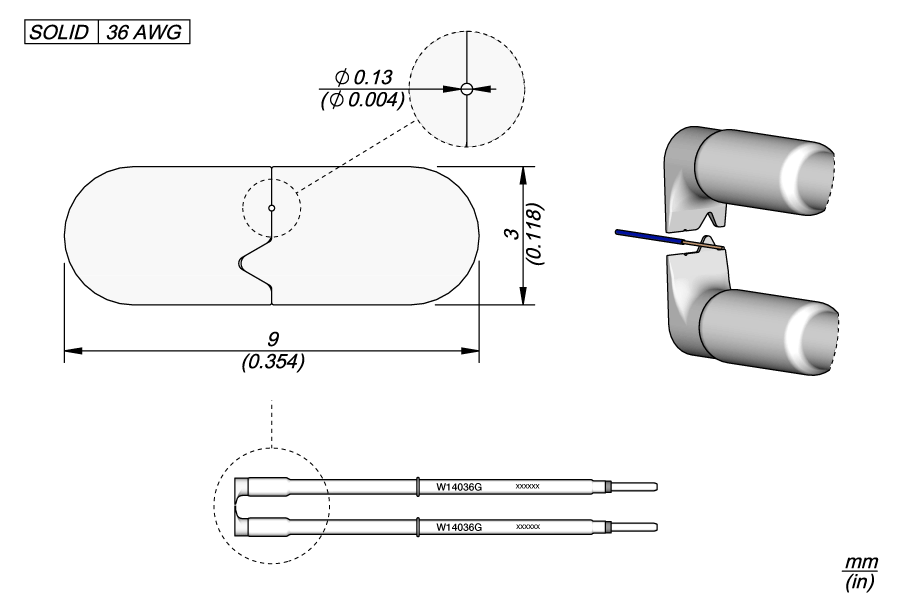 JBC W14036G. Наконечник для термозачистки проводов плоский с отверстием Ø 0.13 мм