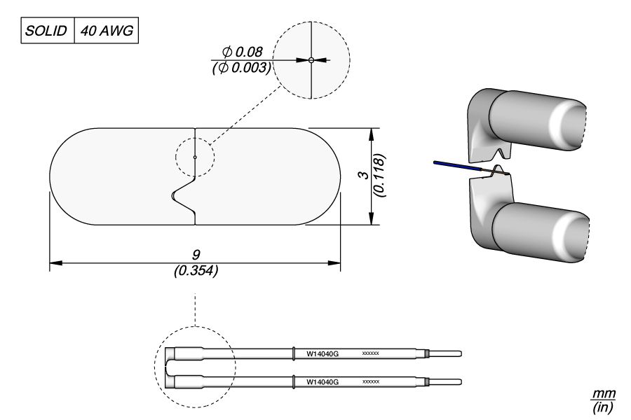JBC W14040G. Наконечник для термозачистки проводов плоский с отверстием Ø 0.08 мм