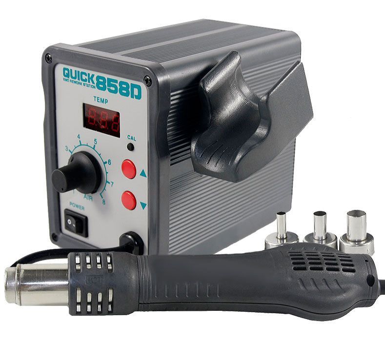 Термовоздушная паяльная станция QUICK 858D предназначена для пайки и демонтажа большинства компонентов поверхностного монтажа: SOIC, CHIP, QFP, PLCC, BGA и т.п.