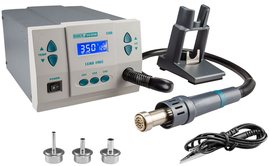 Термовоздушная паяльная станция QUICK 861DW ESD предназначена для пайки и демонтажа большинства компонентов