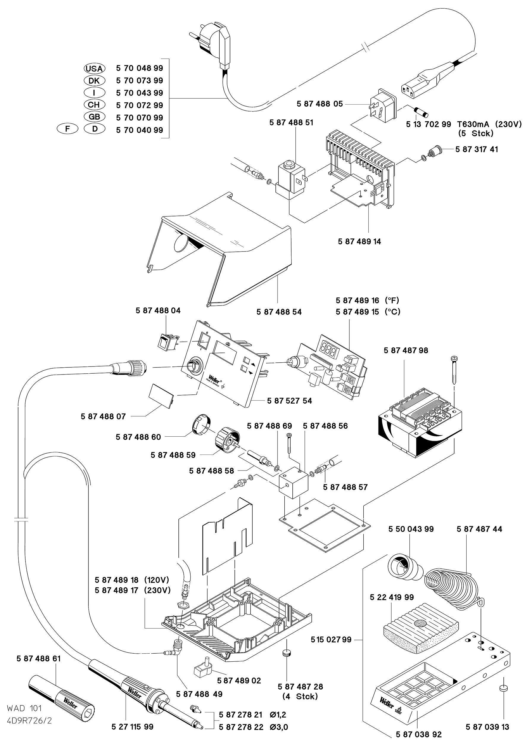 Цифровая термовоздушная паяльная станция Weller WAD 101 (150 Вт), приводится в действие внешним безмасляным компрессором (4 бар) сжатого воздуха или инертного газа.