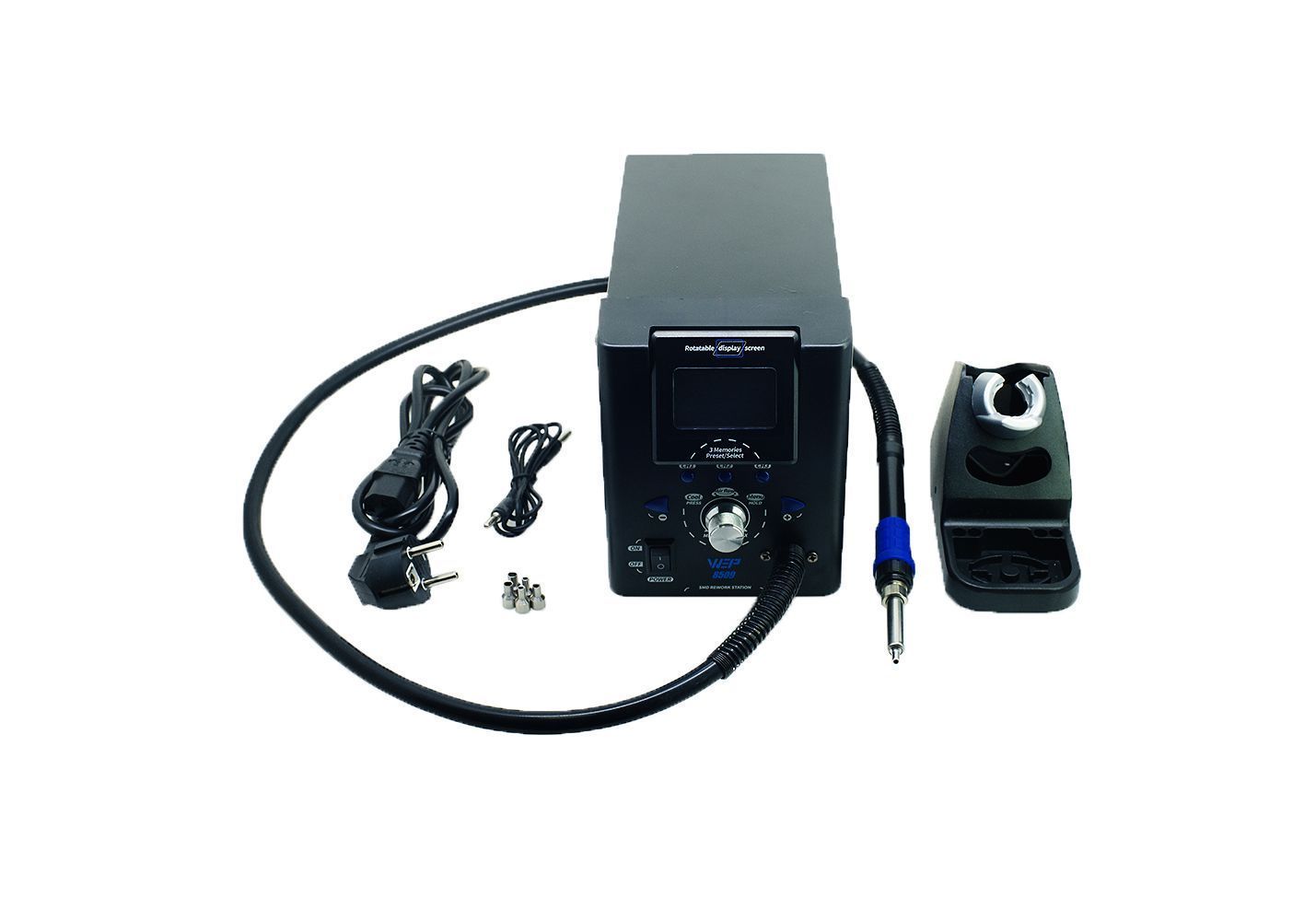 Паяльная станция с миниатюрным феном. Идеально подходит для работы с мелкими микросхемами.