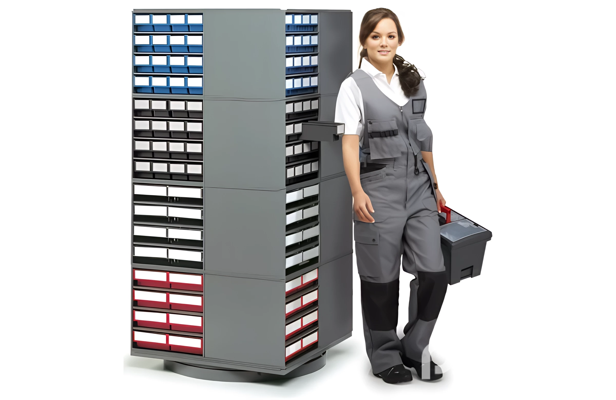 Treston 16-400 поворотная стойка подходят хранения для использования в торговых, производственных и складских помещениях, ремонтных мастерских и сервисах. Состоит из поворотного основания и разделительных элементов для четырех уровней