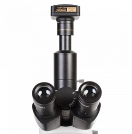 Конструкция тринокулярной визуальной насадки микроскопа позволяет выводить изображение в режиме реального времени на экран ПК с помощью видеоокуляра (в комплект не входит). Видеоокуляр устанавливается в специальный выход - канал визуализации. Это позволяет одновременно наблюдать изображение через окуляры микроскопа и на экране ПК.