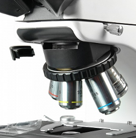 Микроскоп рассчитан на длину тубуса "бесконечность", объективы стандарта DIN, парфокальная высота объективов 45 мм.