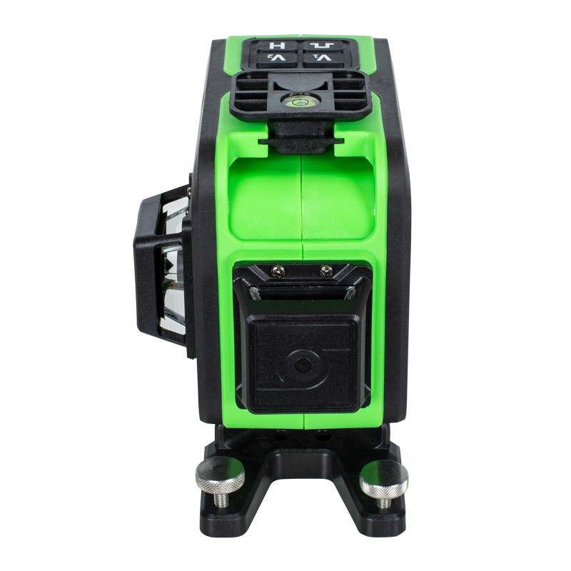 С помощью пульта ДУ можно заблокировать стабилизатор, переключить плоскости либо же отключить их вовсе. Раскладка дублирует кнопки на лазерном уровне во избежание ошибок. Для упрощения идентификации лучей на засвеченных стенах в набор входят зеленые очки.