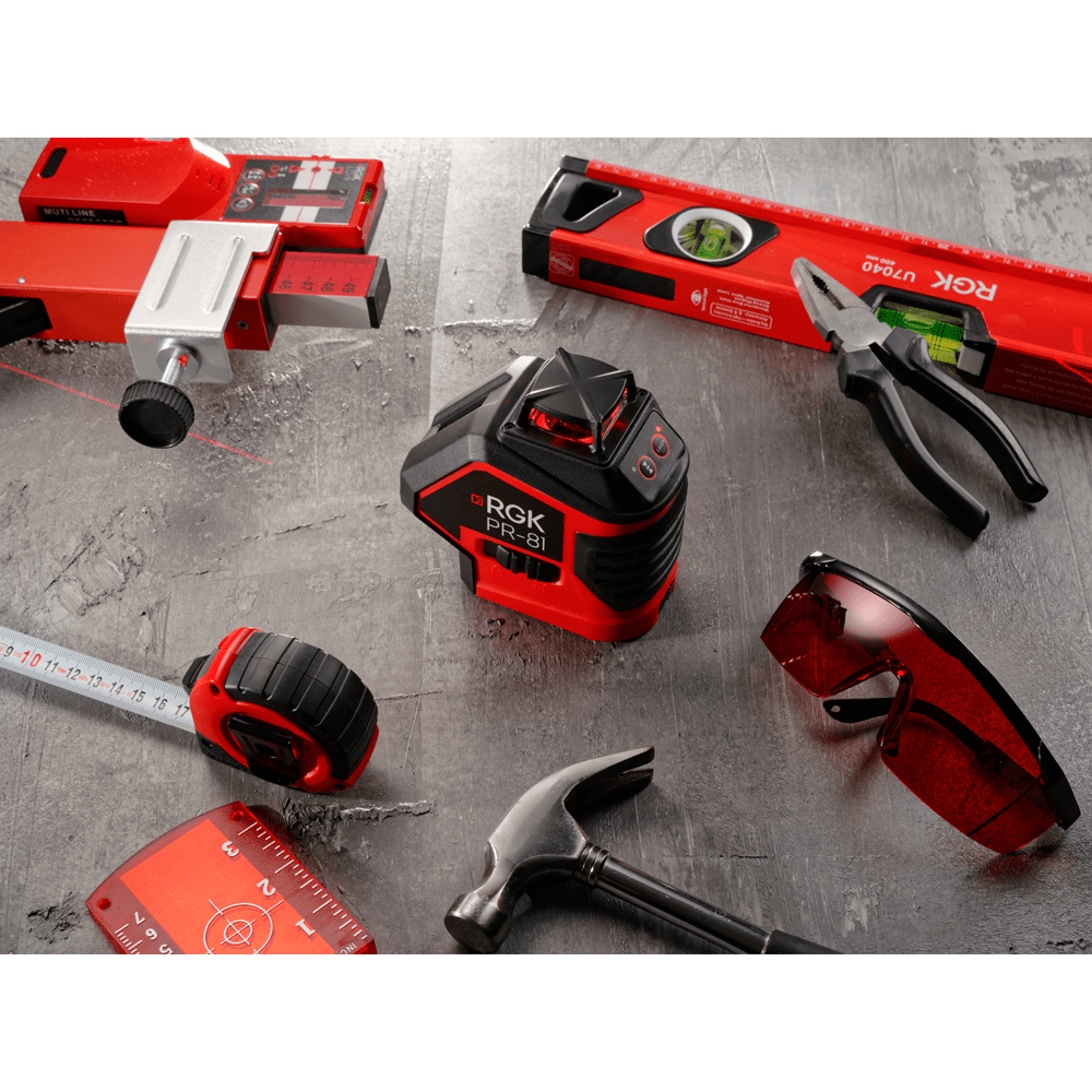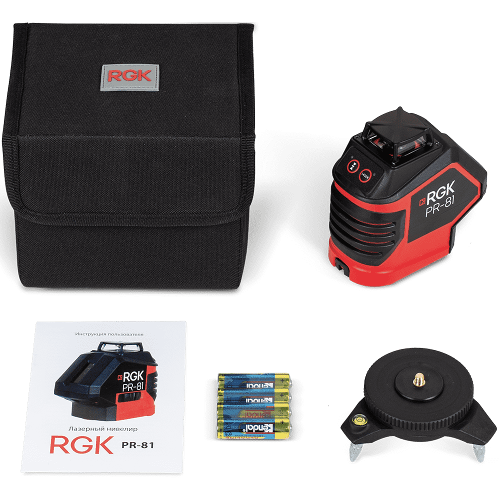 Лазерный нивелир RGK PR-81 проецирует 1 горизонтальную линию с разверткой 360 °, а также 1 вертикальный луч с разверткой 120 °. Для полноценной работы есть функция самовыравнивания, блокировка маятника, два крепления под штатив и степень защиты, позволяющая работать в пыльных помещениях или под моросящим дождем.