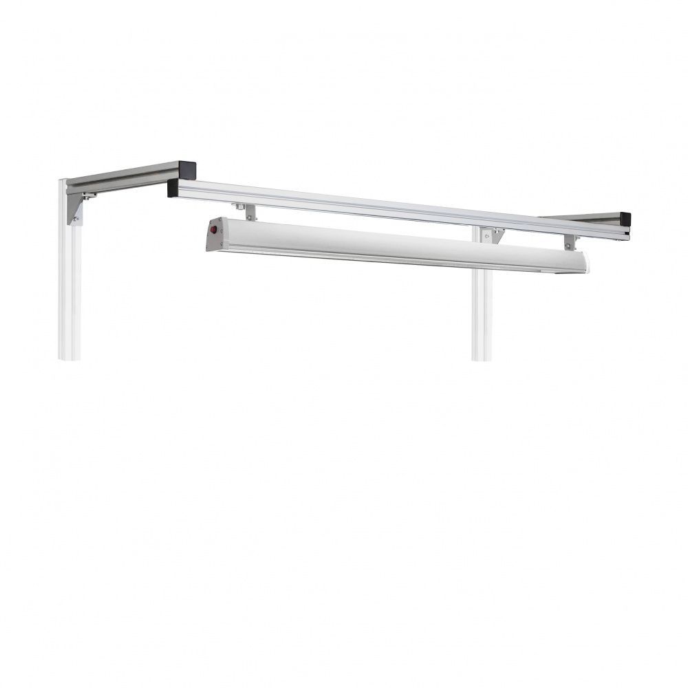 Комплект освещения светодиодный из конструкционного профиля фиксируется на задние стойки на кронштейнах Г-образной формы, регулируется по высоте от уровня столешницы от 400 до 1400 мм, с помощью держателей регулируется направления потока света.