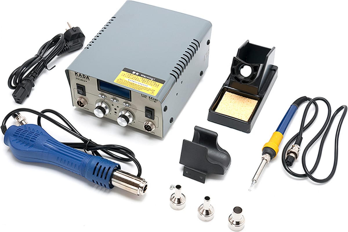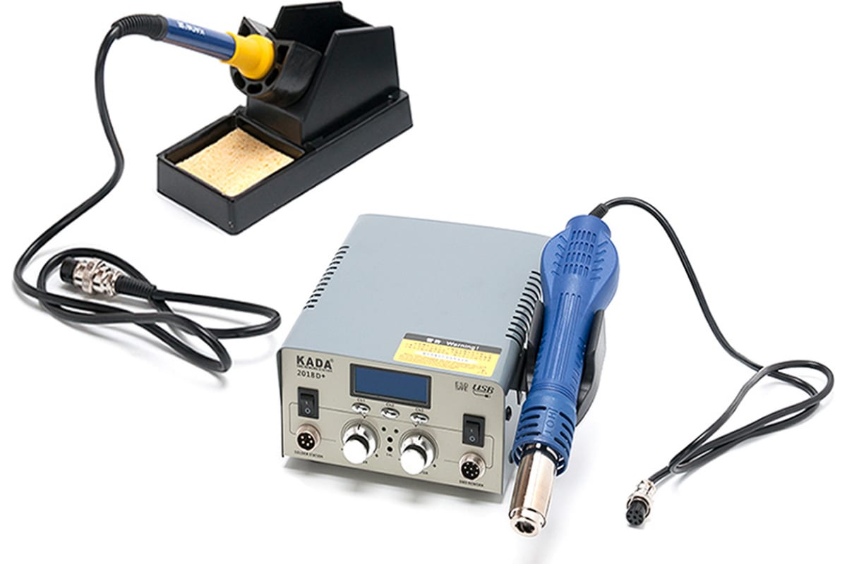 Портативная паяльная станция фен + паяльник в металлическом корпусе.