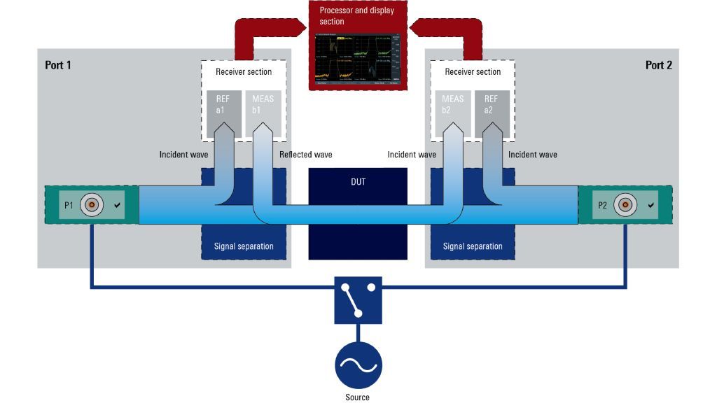 Сложная ВЧ-архитектура обеспечивает доступ к новейшим типам калибровки. Архитектура с четырьмя приемниками содержит специализированные эталонные приемники и измерительные приемники на портах 1 и 2. Благодаря этому анализатор R&S®ZNH поддерживает дополнительные типы калибровки, такие как калибровка UOSM (неизвестная перемычка, ХХ, КЗ и согласованная нагрузка). Данный вид калибровки полезен для ИУ с разными типами входных или выходных разъемов.