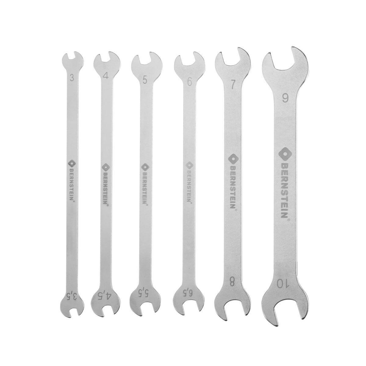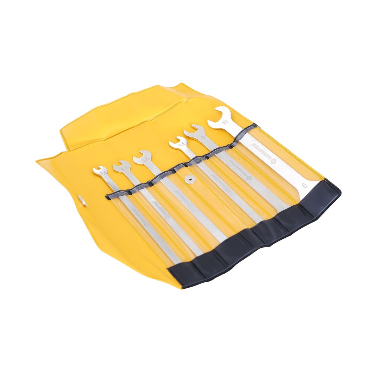 Bernstein B6-750 — набор из шести прецизионных рожковых гаечных ключей в пластиковом свёрнутом футляре для филигранной работы в труднодоступных местах. Изготовлены из инструментальной стали с никелированной поверхностью, обеспечивают точный захват и долговечность. Компактные размеры и узкий профиль идеальны для тонкой резьбы. Поставляются в жёлто-чёрном синтетическом чехле. Доступна ESD-версия по запросу. Вес набора 100 г делает его удобным для транспортировки.