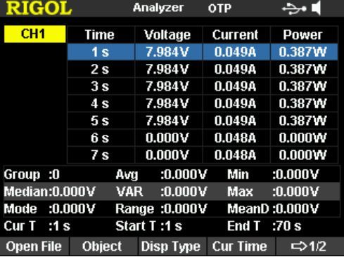Анализатор может производить анализ уже записанных файлов, включая количество шагов, медианное значение, а также среднее значение, дисперсию, диапазон амплитуд, минимальное и максимальное значение, среднюю разницу напряжения, тока или мощности между различными каналами.