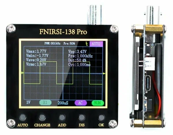 | FNIRSI 138 Pro S&BAT | С аккумулятором 1000 мА·ч, без щупа | Автономная версия с встроенным аккумулятором, может работать без подключения к источнику питания. |
