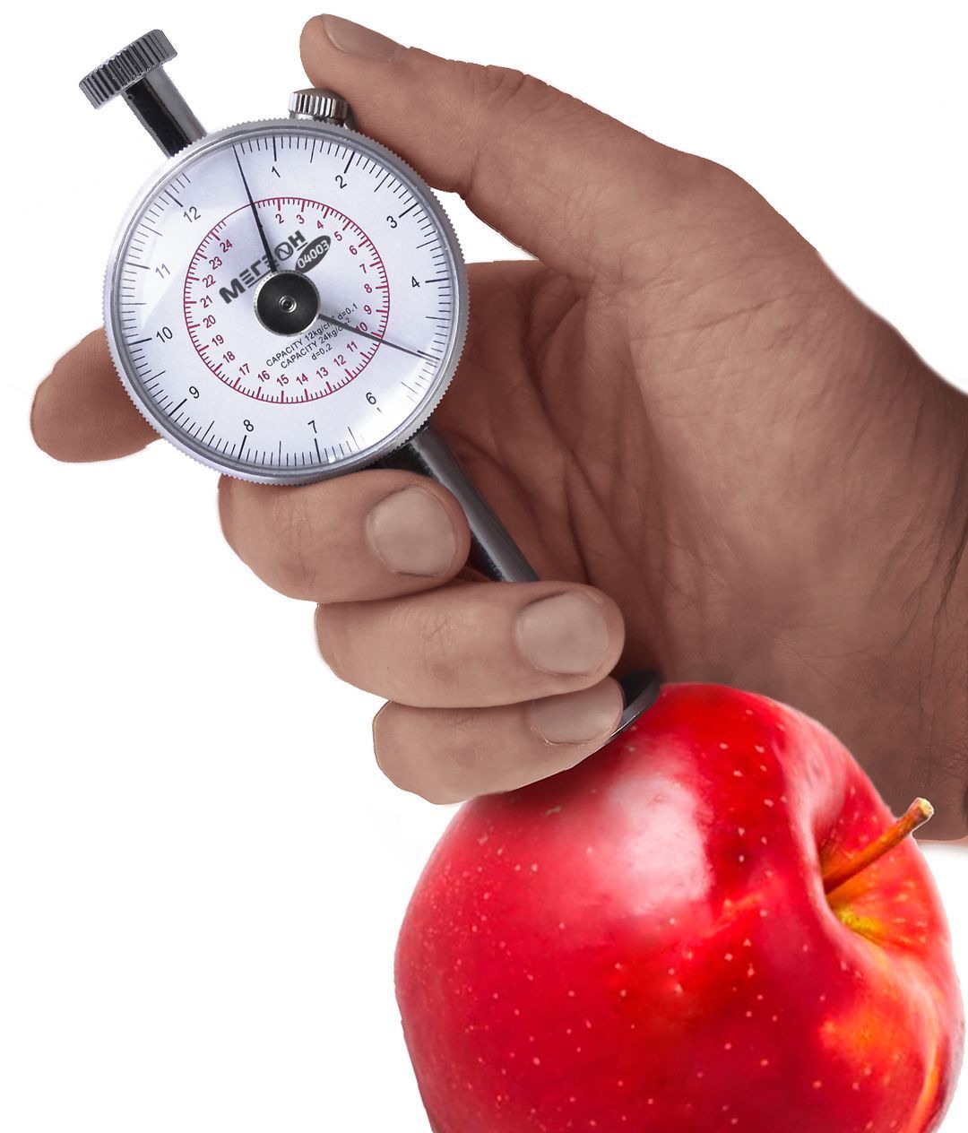 Пенетрометр (фрутестер) МЕГЕОН 04003 предназначен для проведения замеров твёрдости плодов различных сельскохозяйственных растений, фруктов, овощей и ягод. Прибор даёт возможность c высокой точностью производить замеры твёрдости в пределах 0,5…24 кг/см². Измерения твёрдости проводятся путём вдавливания индентора (наконечника) в мякоть плода. Прибор поможет определить спелость плодов, подготавливаемых для сбора на длительную закладку и уже находящихся на хранении. Полученные значения давления фиксируются контрольной стрелкой на циферблате. Непревзойдённое качество исполнения и простота конструкции обеспечивают продолжительный срок службы прибора, также не требует особых условий эксплуатации и может храниться в наборе с остальными инструментами. Таким образом пенетрометр МЕГЕОН 04003 станет незаменимым помощником в сельскохозяйственной сфере.