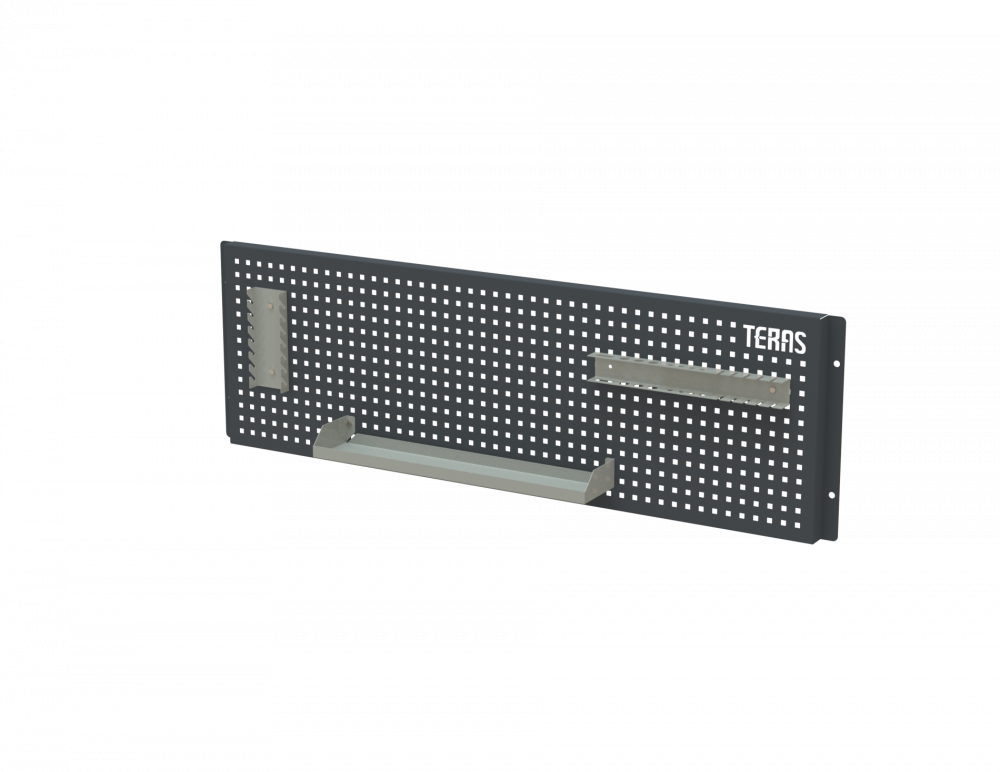 Перфорированные экраны позволяют размещать вспомогательные инструменты на верстаке. В комплект входят навесная полочка, и два держателя для инструмента.