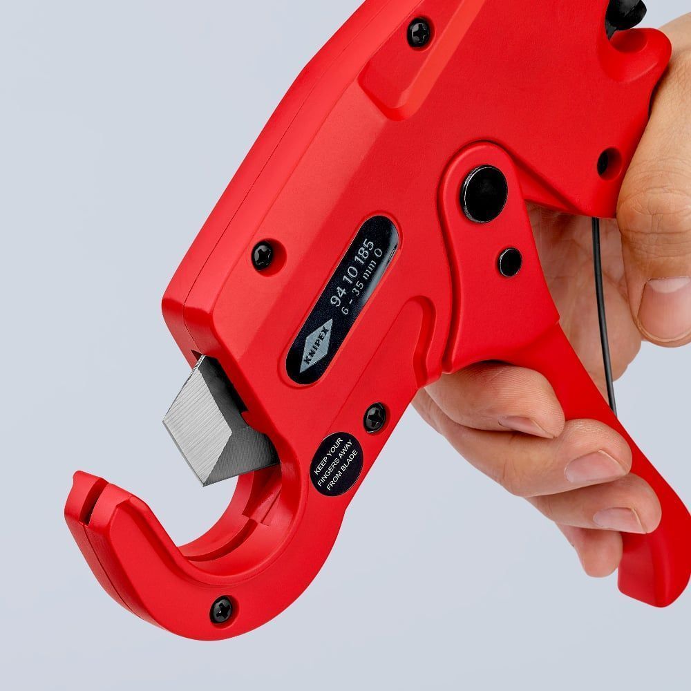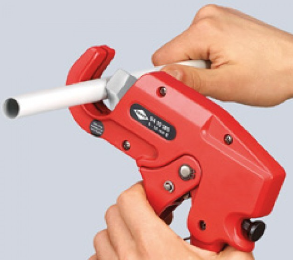 Труборез KN-9410185 для резки без заусенцев пластмассовых труб (например, изолирующих пластмассовых труб) с ⌀6 - 35 мм.