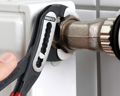 Клещи сантехнические (переставные-трубные) KNIPEX Alligator KN-8802300TBK используются для работ с деталями круглого профиля, шестигранного профиля. Выбор и регулировка нужного размера захвата упрощена за счет специального механизма - достаточно нажать на кнопку и переставить нижнюю губку в нужное положение. Предусмотрена возможность самофиксации на гайках и трубах для предотвращения проскальзывания по поверхности деталей и менее утомительной работы.