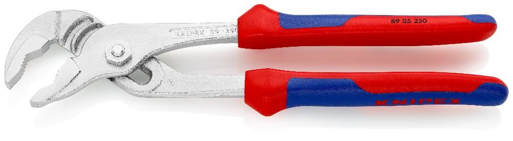 Клещи сантехнические с гребенчатым шарниром KNIPEX KN-8905250 используется для работы с деталями круглого профиля, например, с трубами. Он может применяться и как гаечный ключ. Инструмент имеет пять позиций установки зева, благодаря чему работать проще.
