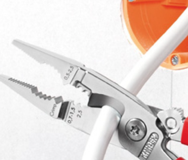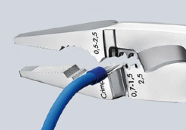 KNIPEX KN-1382200 электромонтажные клещи для захвата плоского и круглого материала, гибки, удаления заусенцев, резки кабеля, удаления изоляции и опрессовки контактных гильз.