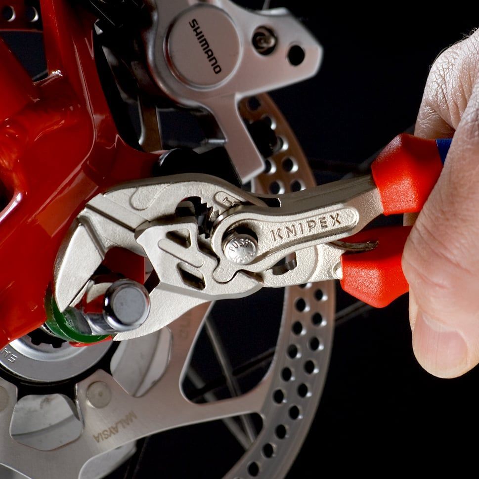 KNIPEX KN-8605150SB используются для различных видов работ: опрессовка, сжатие и изгибание деталей, обламывание кафельной плитки и пр. Предусмотрена возможность работы данного ключа, как с метрическими, так и с дюймовыми деталями за счет бесступенчатой регулировки захвата.
