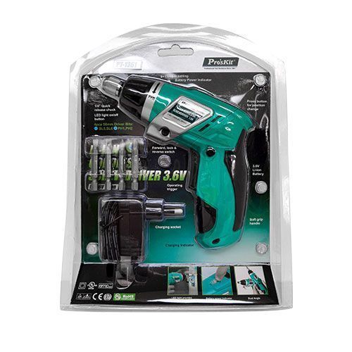 ProsKit PT-1361F — беспроводная электрическая отвертка с трансформируемой рукояткой и точной регулировкой крутящего момента.