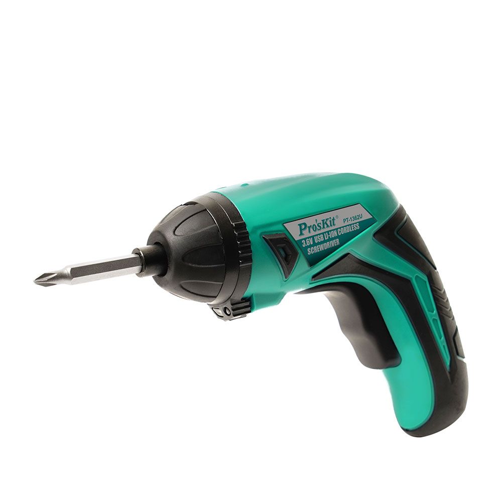 ProsKit PT-1362U — беспроводная электрическая отвертка с возможностью USB-зарядки, идеальная для работы в ограниченных пространствах.