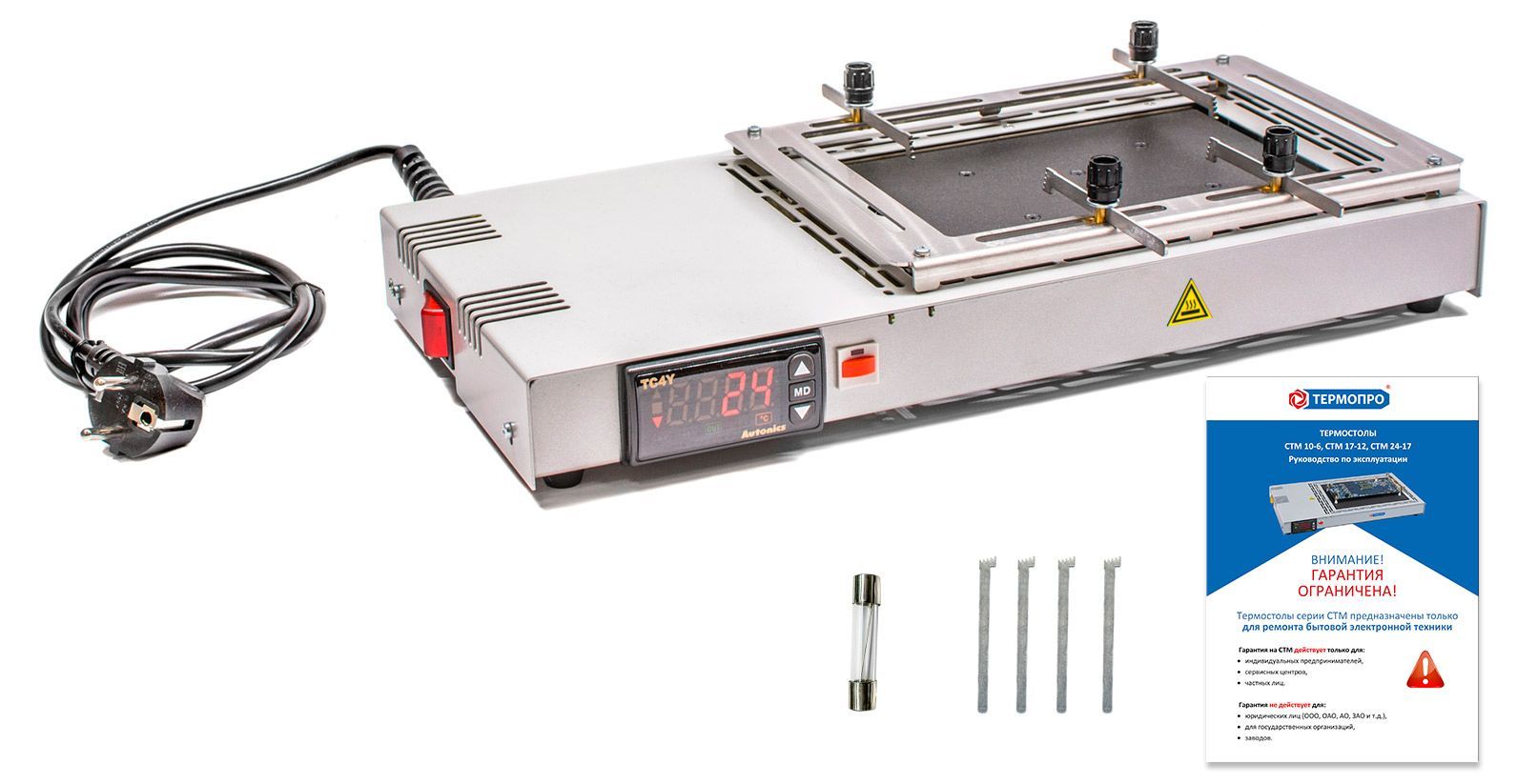 Термостолы серии СТМ выполнены в низкопрофильном корпусе, в котором объединены нагреватель, цифровой ПИД-регулятор температуры и твердотельное реле коммутации нагрузки.
