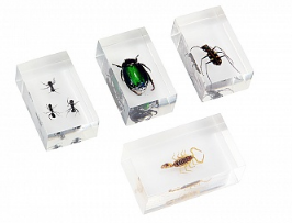 Набор насекомых для изучения под стерео-микроскопом. Экспонаты запаяны в высококачественный прозрачный акрил.