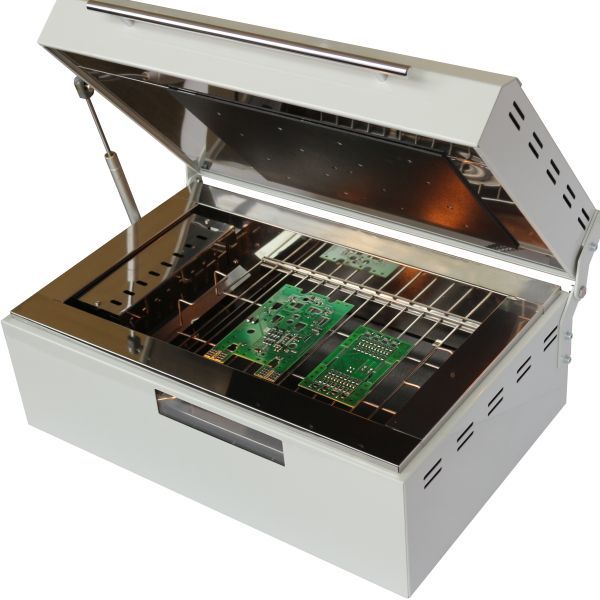 Печь обеспечивает равномерный управляемый нагрев платы по заданному термопрофилю. Внутренняя камера печи разогревается верхней и нижней нагревательной панелью, а наличие встроенного вентилятора обеспечивает увеличение скорости нагрева. Окно в боковой стенке печи и подсветка камеры позволяют визуально контролировать процесс оплавления паяльной пасты.