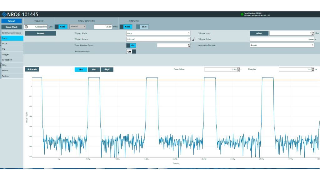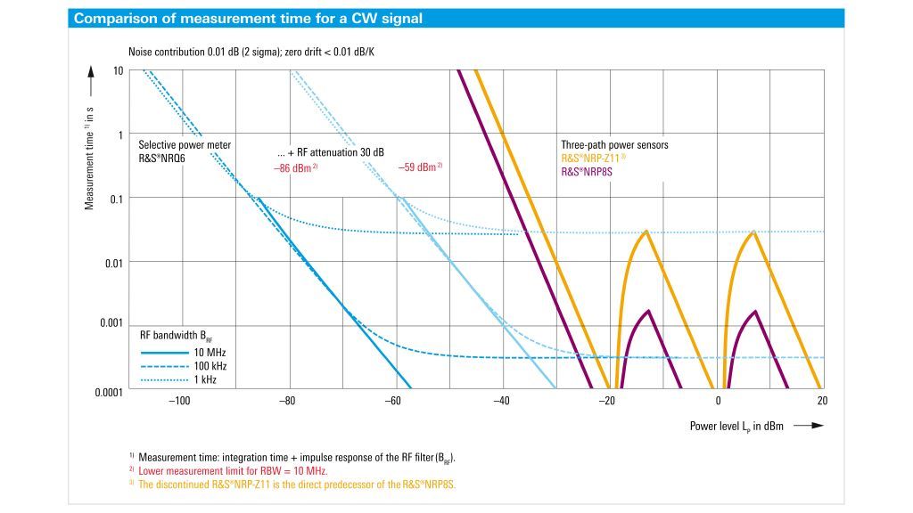 R&S®NRQ6 базируется на технологии приемника и может выполнять измерения мощности в ограниченной полосе частот вплоть до уровней –130 дБмВт. В датчике R&S®NRQ6 сочетаются высокая точность и высокая скорость измерений, превосходящие возможности современных измерителей мощности. Кроме традиционных измерений с непрерывным усреднением R&S®NRQ6 выполняет измерения коэффициента утечки в соседний канал (ACLR) и позволяет отображать измеренные кривые. Благодаря опциям дополнительного интерфейса I/Q-данных R&S®NRQ6-K1, сервоуправления мощностью R&S®NRQ6-K2 и фазокогерентных измерений R&S®NRQ6-K3 датчик R&S®NRQ6 формирует новую категорию контрольно-измерительных приборов.