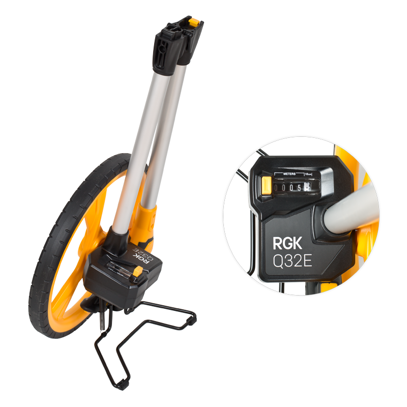Дорожное колесо RGK Q32E диаметром 320 мм предназначено для измерения расстояний на всех видах поверхностей с точностью 10 сантиметров. Благодаря механическому счетчику, прибор сохраняет точность в условиях высокой влажности и запыленности.