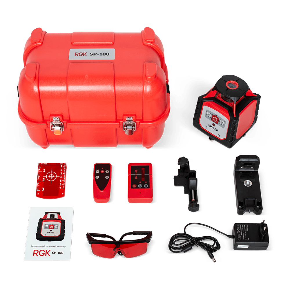 Ротационный нивелир RGK SP-100 представляет из себя точный и надёжный прибор, проецирующий горизонтальную плоскость на 360° с точностью ±1,5 мм на 10 м.