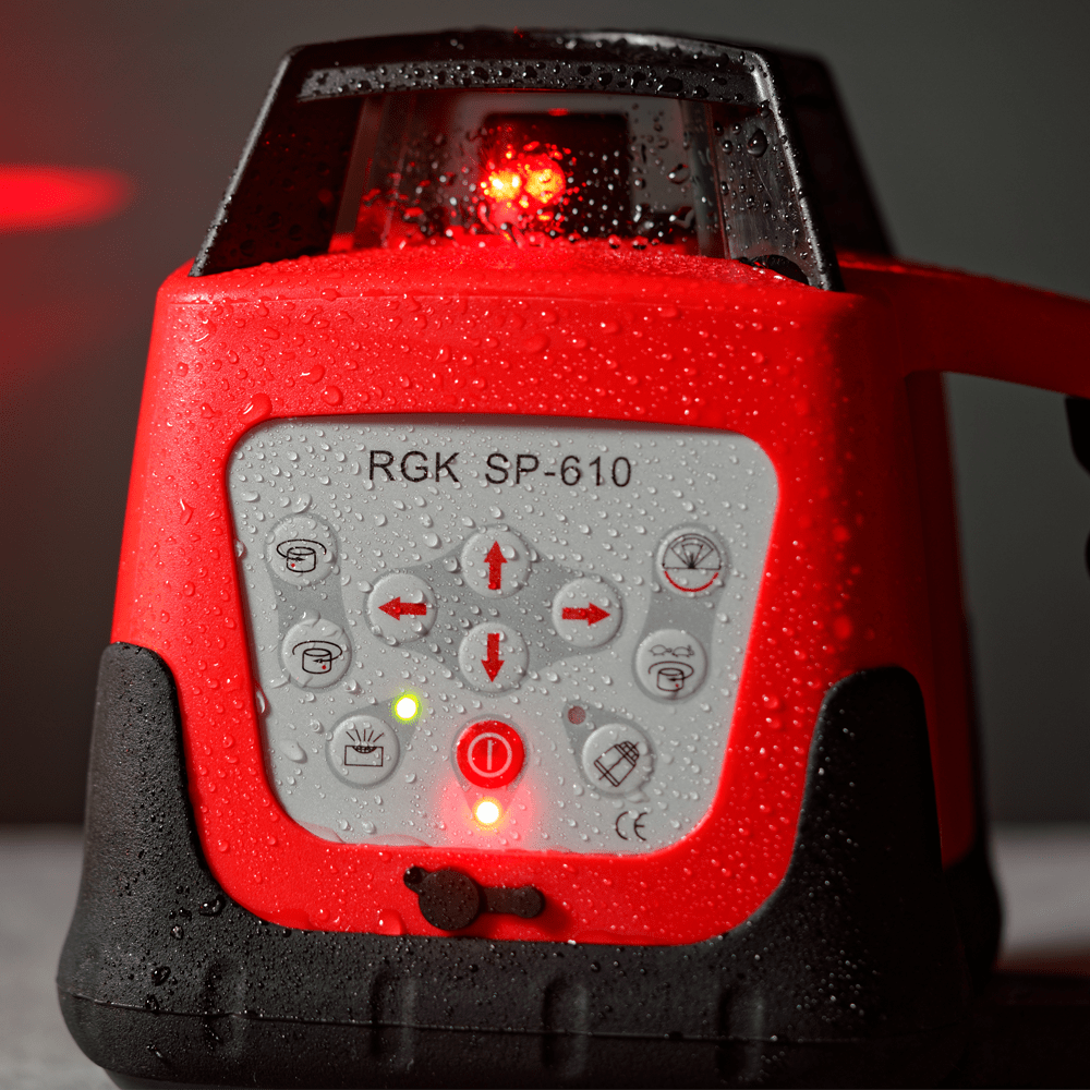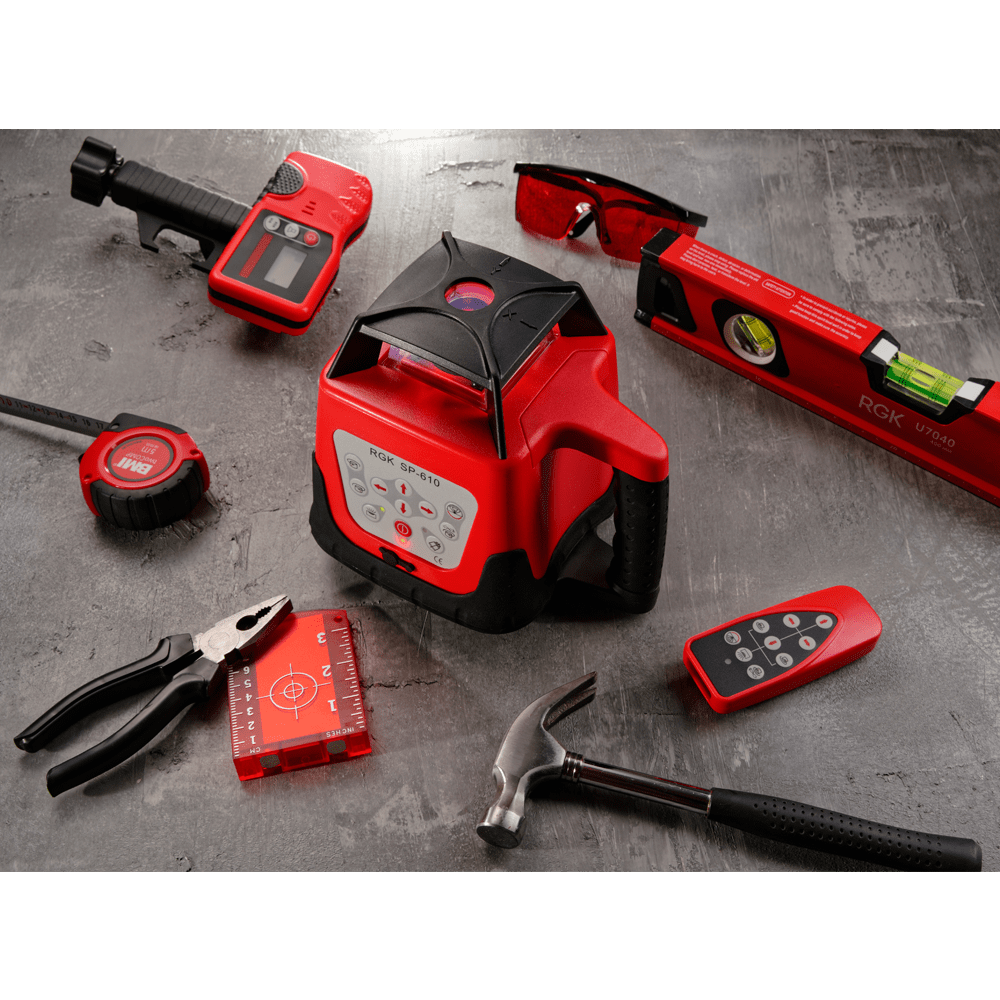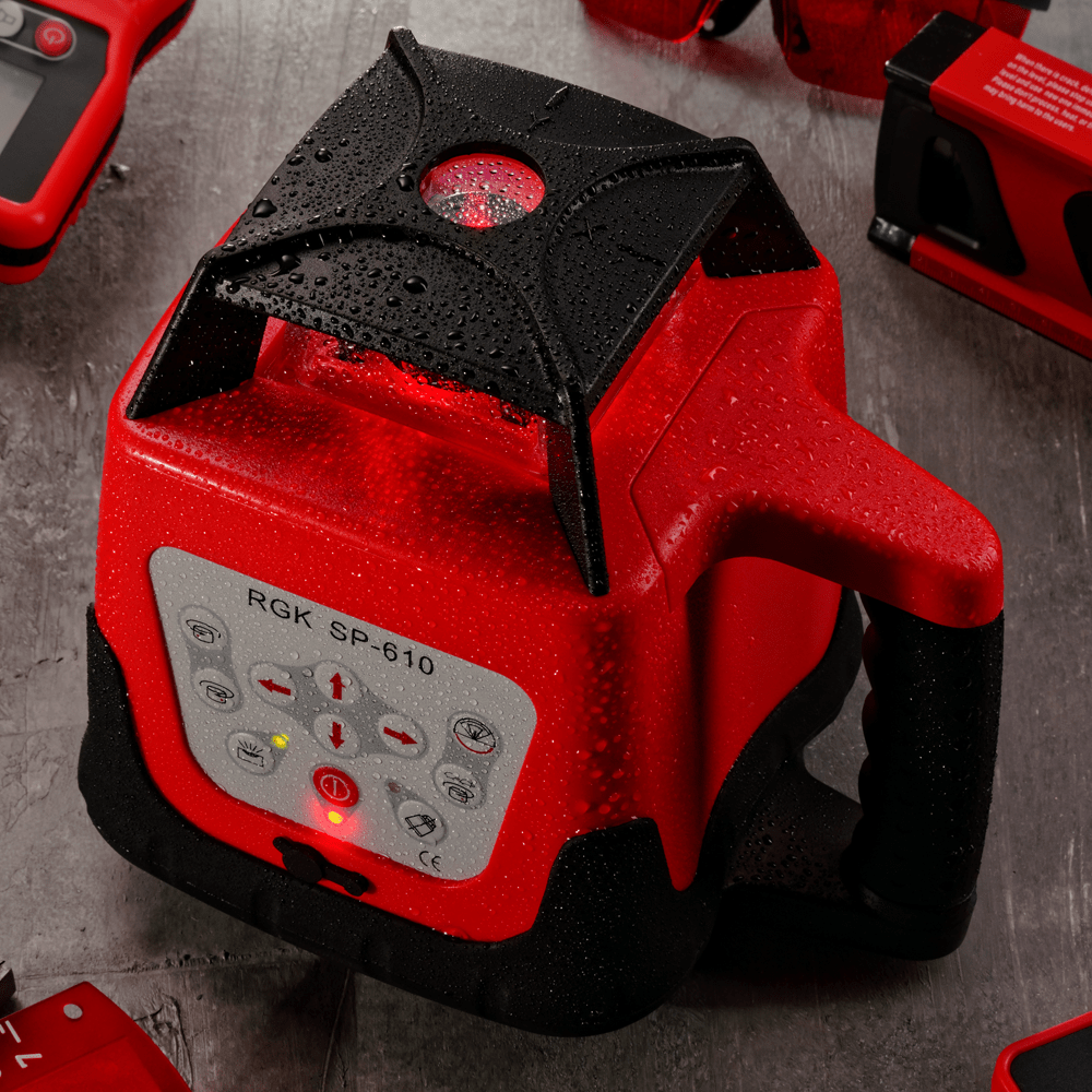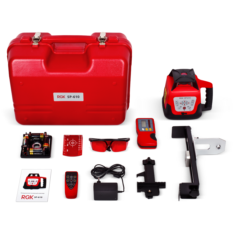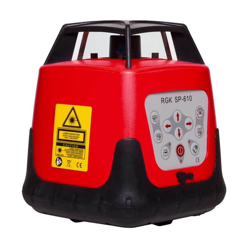 Как профессиональный лазерный уровень, ротационный нивелир RGK SP-610 отлично подходит как для внутренних работ, так и для работы на улице. Прибор оснащён инновационной лазерной системой второго класса, которая позволяет работать на достаточно большом расстоянии. Вращающаяся головка нивелира RGK SP-610 проецирует плоскость на 360°, которая хорошо видна в помещении. В комплект с лазерным уровнем RGK SP-610 входит специальный приемник лазерного излучения, благодаря которому вы даже в яркий солнечный день сможете работать на дистанциях до 300 метров.