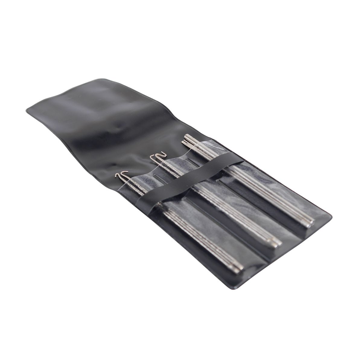 Лёгкий (39 г) инструмент с чехлом чёрного цвета и 3 пустыми карманами минимизирует риск повреждения деталей, обеспечивая надёжный захват пружин.