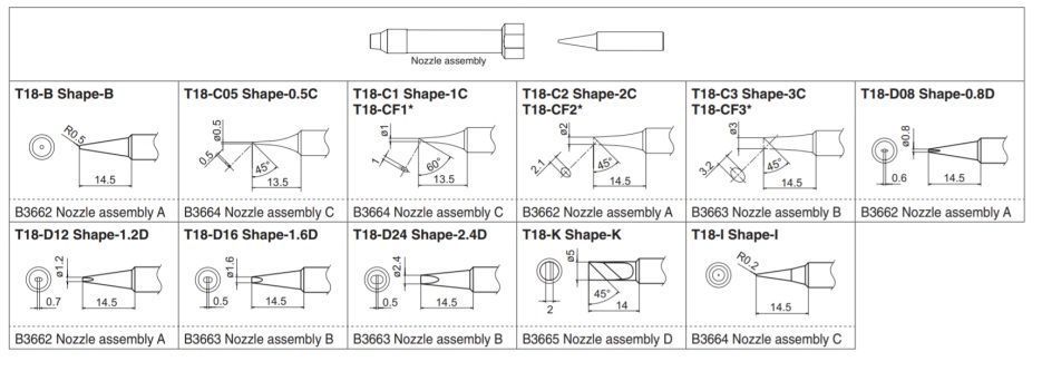 T18-CF3 Shape-3C Совместимая насадка для азота — B3663(B) Совместимый наконечник для подачи припоя |