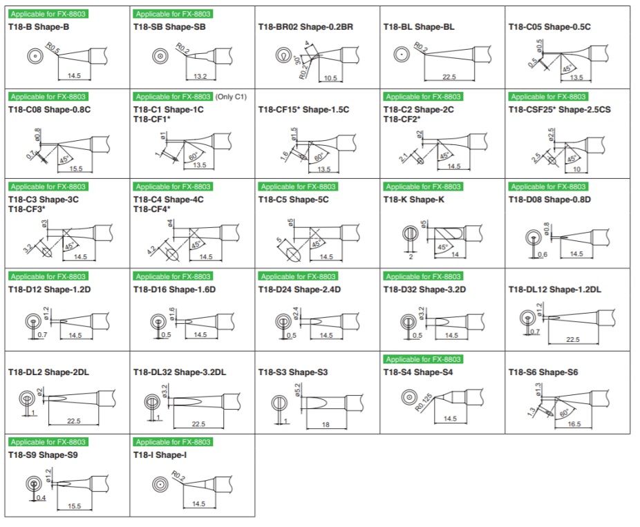Паяльные наконечники серии Hakko T18: