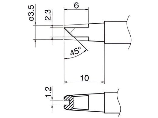 Паяльное жало с пазом сложной формы с проушиной ⌀3,5×10 мм 45° Hakko T121612.