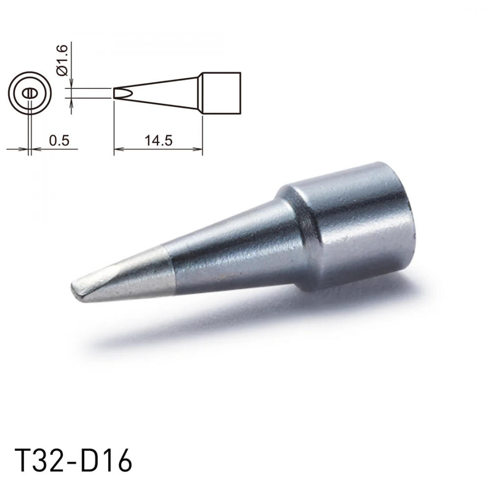 Hakko T32D16. Жало для паяльника клиновидное ⌀1.6×14.5 мм