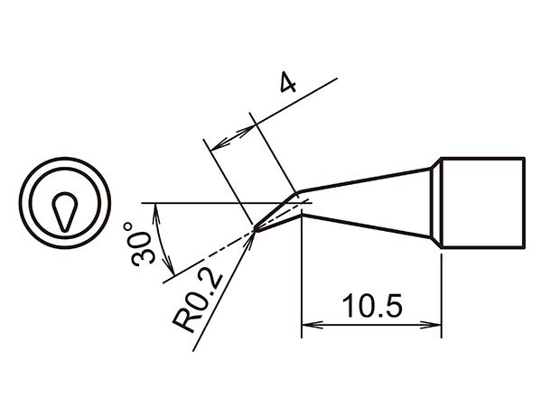 Hakko T32J02. Жало для паяльника коническое изогнутое R 0.2×4×10.5 мм 30°