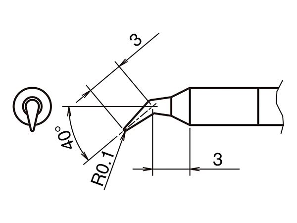 | Размеры рабочей части | R 0.1 × 3 × 3 мм |