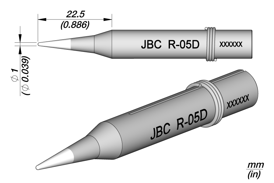 картинка JBC R-05D (0390401). Жало Iron Tips для сетевых паяльников коническое прямое