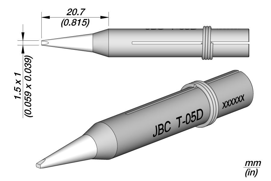картинка JBC T-05D (0400804). Жало Iron Tips для сетевых паяльников клиновидное прямое