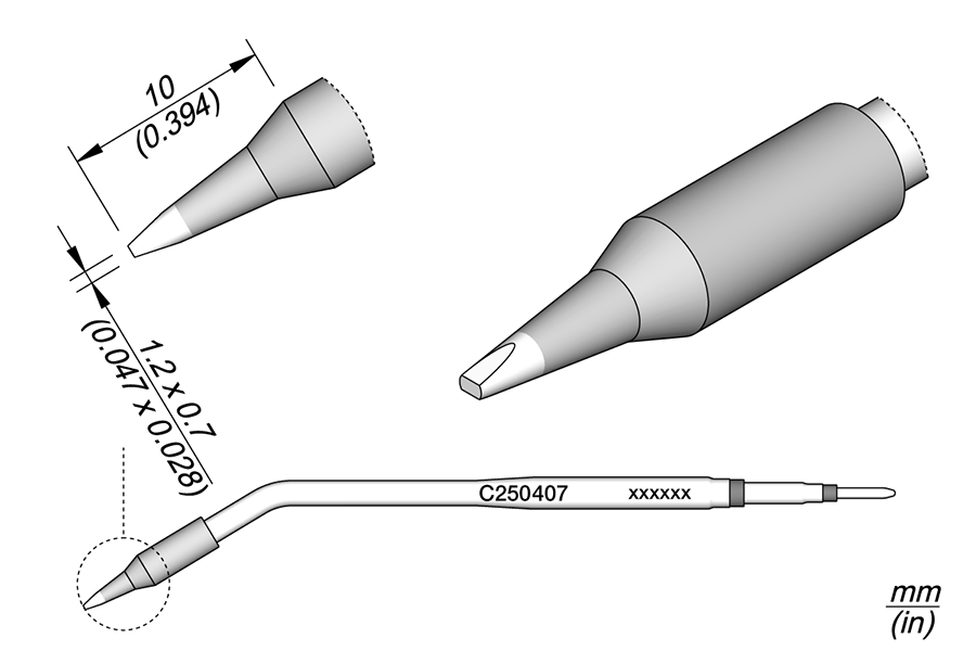 Размеры рабочей части, мм 1.2 × 0.7 × 10 мм