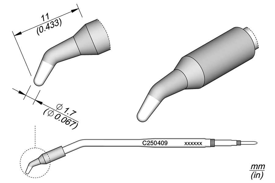 картинка JBC C250409. Жало C250 коническое изогнутое